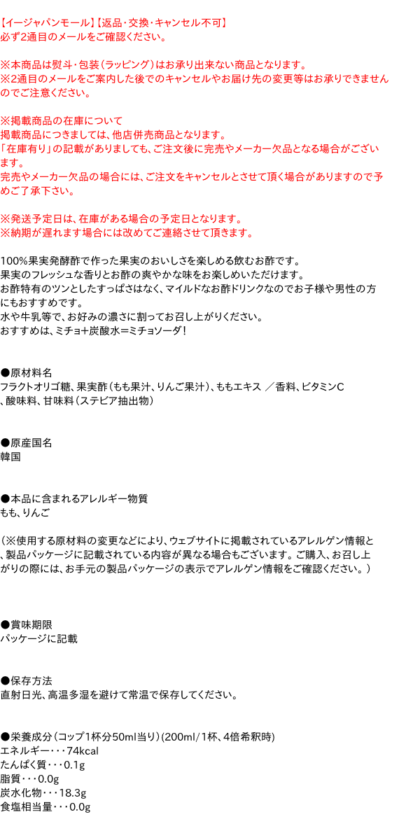 [関連キーワード:調味料 調味酢 す ス お酢 ドリンク フルーツ 炭酸割り もも味 モモ 桃 ピーチ みちょ]【イージャパンショッピングモール】内のみのお買い物は、送料一律でどれだけ買っても同梱する事が出来ます。