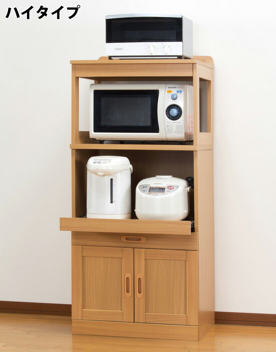 [ラインナップ] ロータイプ ハイタイプ 木製スライド棚付きレンジ台 ハイタイプ シンプルなデザインで、機能的なレンジ台。