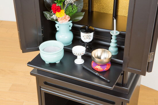 \ページ限定・カードケース付/ 仏壇 上置き コンパクトサイズ 小型 【送料無料】【上置仏壇】 引き出し付き 折れ戸式扉 スライド式仏具棚
